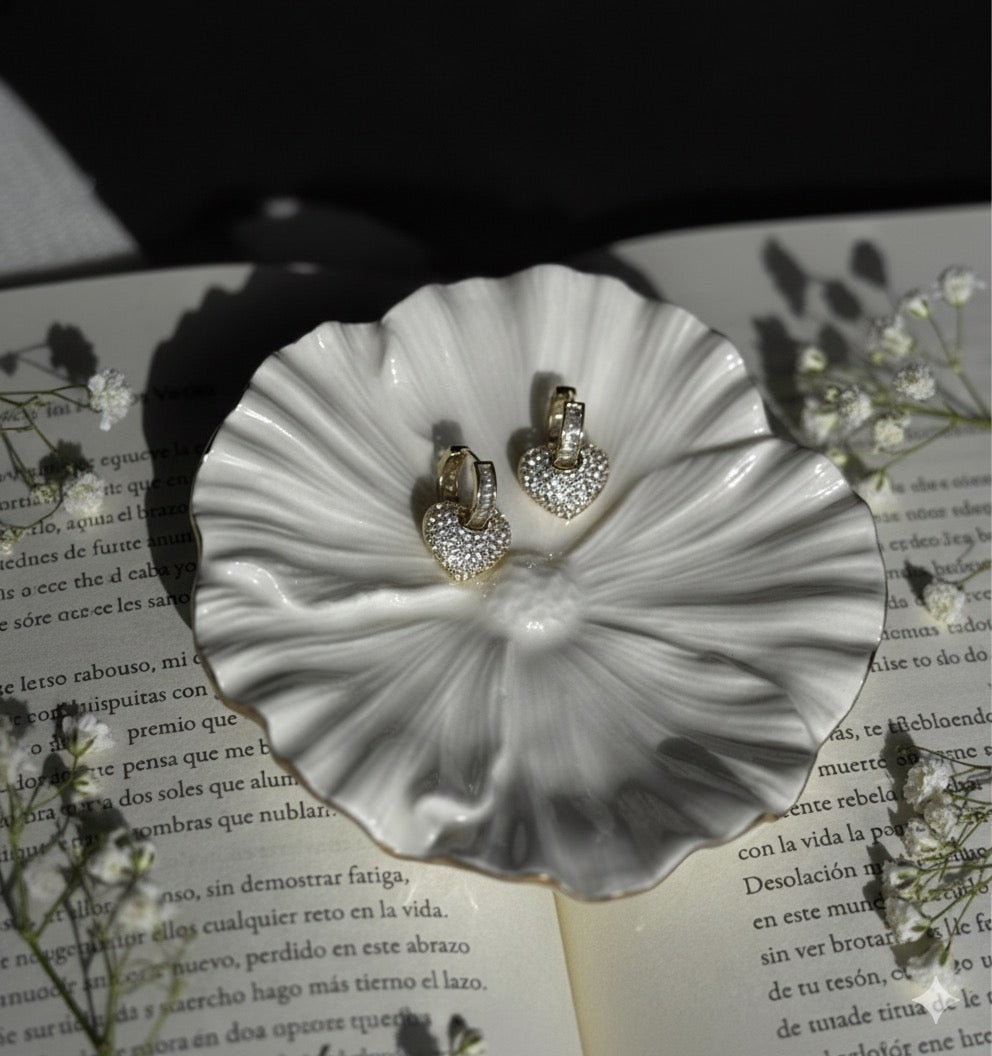 La técnica pavé asegura que los aretes deslumbren desde cualquier ángulo, creando la ilusión de un corazón cubierto de diamantes. Son ligeros, cómodos y el accesorio perfecto para añadir un toque de glamour a tu look diario o de fiesta.
