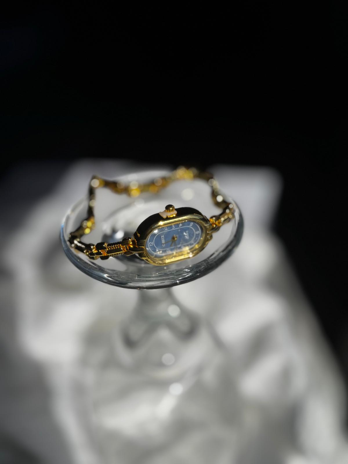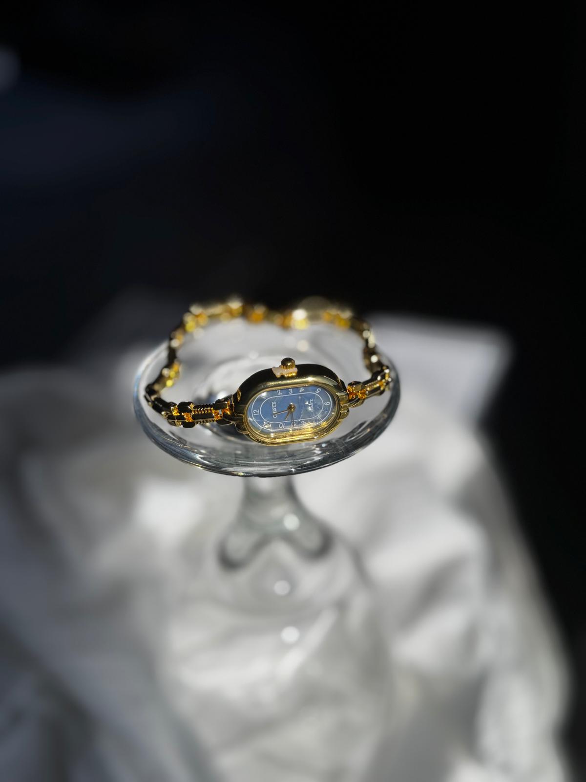 Estilo: Un reloj clásico y atemporal que se destaca por su caja ovalada y la elegancia del contraste entre el azul intenso y el dorado brillante.